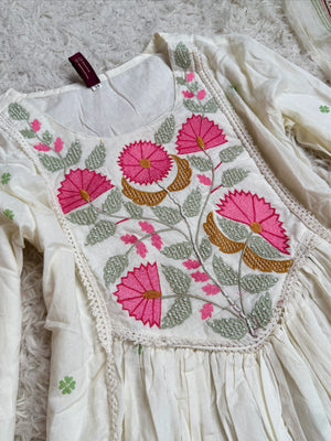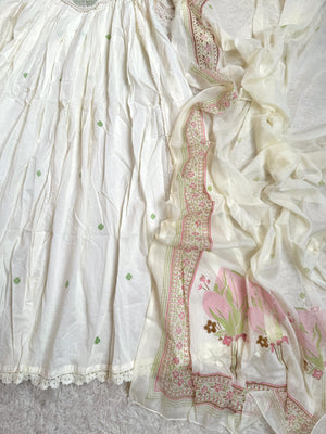 Off-White Embroidered Super-Flare Anarkali-Kurti-Dupatta-Set