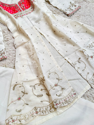 -Product Name: White Sequin-Embroidered Crepe-Silk fancy Palazzo-Kurti Set