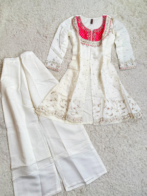 White Sequin-Embroidered Crepe-Silk fancy Palazzo-Kurti Set