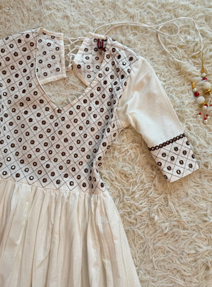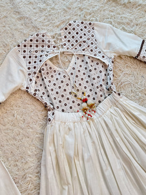 White Embroidered Backless Super-Flare Anarkali-Kurti-Set