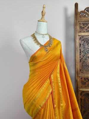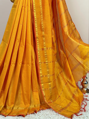 Mustard-Yellow Handspun Pure-Cotton kattam South-Saree