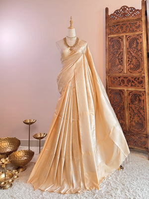 -Product Name: Pastel-Peach Soft-Silk Zari-Woven Borderless south saree